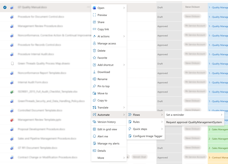 For ISO 9001 compliant quality management systems, and document control in particular, the requirements are clear but the implementation path is wide open. Modern platforms like Microsoft 365 already solve most of the problem. SharePoint alone got us roughly 90 percent of the way there, but the remaining 10 percent required deliberate engineering to produce an ISO ready document control system.